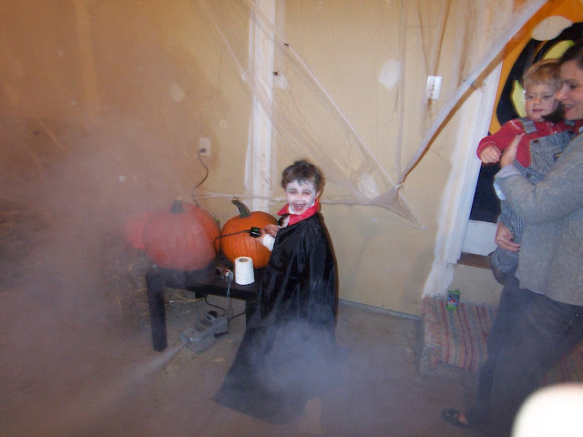 | Not only is this Mommy Fashionable, but she know how to put together a party... They had the whole garage decorated and all the children came in their Costumes... |