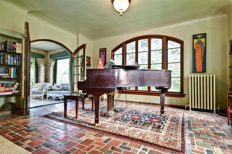 | Mudroom with lockers Look at the brick floor and the arch in the back door This interior designer did a fabulous job updating without taking the Charm out of the original design |